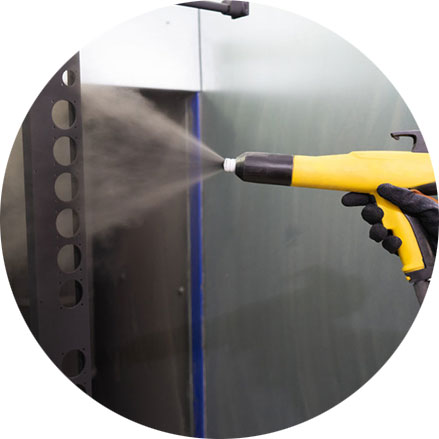Consiste en la elaboración de un revestimiento a materiales metálicos, que provee protección a la superficie con una pintura en polvo sintética, dura y resistente.